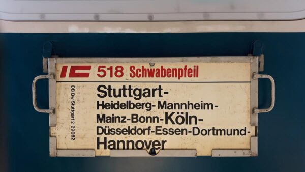 Nächster Zuglaufschild IC 518 Schwabenpfeil Stuttgart-Hannover