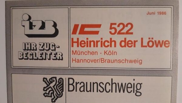 IZB IC 522 Münchner Kindl München-Dortmund/Hannover Startseite Zuglaufschilder Besonderheiten Zugbegleiter Faltblatt vorhanden IZB IC 522 Münchner Kindl München-Dortmund/Hannover Vorheriger Zuglaufschild IZB IC 522 Heinrich der Löwe München-Hannover/Braunschweig Nächster Zuglaufschild IZB IC 521 Germania Hannover-München