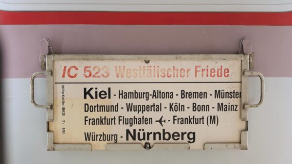 Dieser Zugteil wurde 1992 erst in Frankfurt Main Hbf angehängt, während der Großteil des Zuges aus Nürnberg kommt.Hier ist Frankfurt Flughafen nicht abgekürzt geschrieben …