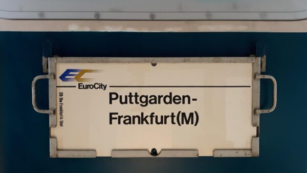 Ein Zug,gestellt vom Betriebswerk Basel,ungewöhnlich ist,das man Frankfurt/Flughafen komplett geschrieben hatte,normaler Weise kürzt man es mit Ffm-Flughafen ab. ( Ffm–>FrankFurt/Main),da die Züge auch über Frankfurt/M Hbf geführt wurden und daher schon der Name Frankfurt einmal genannt war.Köln,als sehr wichtiger Umsteigepunkt ist hier größer aufgedruckt.