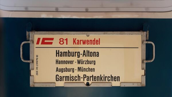 IC 527 Wahalla Hannover-Regensburg Startseite Zuglaufschilder Fernverkehr InterCity IC 527 Wahalla Hannover-Regensburg Das Betriebswerk Köln 5 stellte diesen Zug. Vorheriger Zuglaufschild Regensburg-München Nächster Zuglaufschild IC 81 Karwendel Hamburg=Altona-Garmisch=Partenkirchen