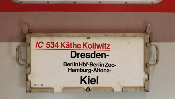 Vorheriger Zuglaufschild IC 534 Käthe Kollwitz Dresden-Kiel