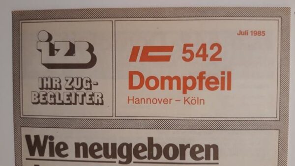 IZB IC 543 Wilhelm Busch Köln-Hannover Startseite Zuglaufschilder Besonderheiten Zugbegleiter Faltblatt vorhanden IZB IC 543 Wilhelm Busch Köln-Hannover Vorheriger Zuglaufschild IZB IC 543 Dompfeil Köln-Hannover Nächster Zuglaufschild IZB IC 542 Dompfeil Hannover-Köln