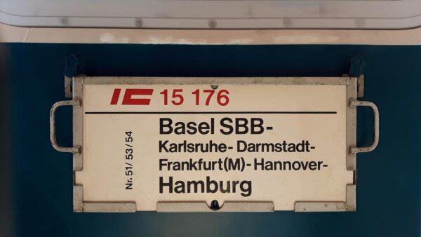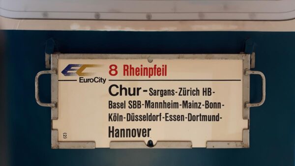 Dieses Zuglaufschild wurde 1987 täglich außer am Samstag,eingesetzt,nur am Samstag endete dieser Zug bereits in Köln.