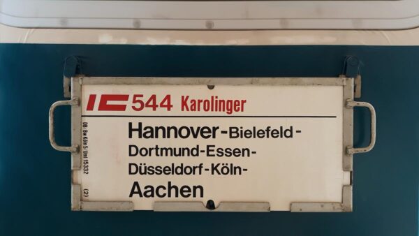 Hier stimmt nun die Nummer des IC 545 Karolinger nach Hannover…Druckfehler gibt es unter:https://alte-zuglaufschilder.de/zuglaufschild/ic-544-karolinger-koeln-hannover/