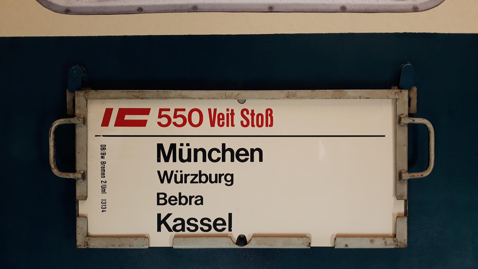 IC 550 Veit Stoß München-Kassel Startseite Zuglaufschilder Fernverkehr InterCity IC 550 Veit Stoß München-Kassel Das Betriebswerk Bremen 2 stellte diesen Zug. Vorheriger Zuglaufschild IC 513 Wetterstein Braunschweig-Mittenwald Nächster Zuglaufschild IC 691 Herkules Kassel-München