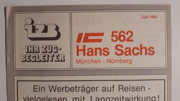 IZB IC 563 Hans Holbein Nürnberg-München Startseite Zuglaufschilder Besonderheiten Zugbegleiter Faltblatt vorhanden IZB IC 563 Hans Holbein Nürnberg-München Vorheriger Zuglaufschild IZB IC 565 Burggraf Köln-München Nächster Zuglaufschild IZB IC 562 Hans Sachs München-Nürnberg