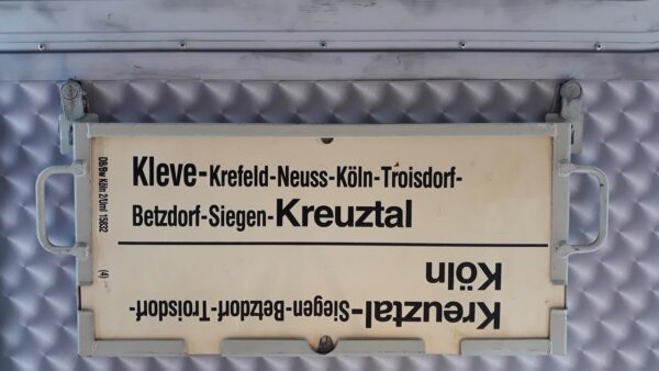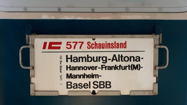 IC 564 Burggraf München-Köln- Startseite Zuglaufschilder Fernverkehr InterCity IC 564 Burggraf München-Köln- …ungewöhnlich ist der Bindestrich hinter dem Zielbahnhof Köln- Vorheriger Zuglaufschild Kleve-Kreuztal Nächster Zuglaufschild IC 577 Schauinsland Hamburg-Altona-Basel SBB