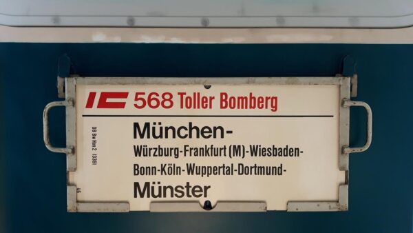 IC 568 Toller Bomberg München-Dortmund Startseite Zuglaufschilder Fernverkehr InterCity IC 568 Toller Bomberg München-Dortmund 1985 fuhr dieser Zug nur am Sonntag bis Dortmund. Vorheriger Zuglaufschild D 899 Hamburg-Altona-Frankfurt(M) Nächster Zuglaufschild IC 568 Toller Bomberg München-Münster