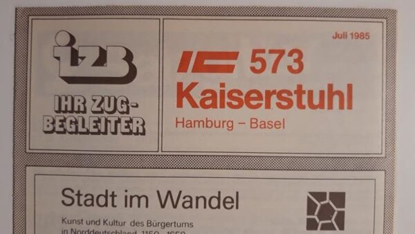 Startseite Zuglaufschilder Besonderheiten Zugbegleiter Faltblatt vorhanden IZB IC 572 Kaiserstuhl Basel-Hamburg