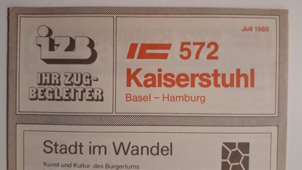 IZB IC 573 Kaiserstuhl Hamburg-Basel Startseite Zuglaufschilder Besonderheiten Zugbegleiter Faltblatt vorhanden IZB IC 573 Kaiserstuhl Hamburg-Basel Vorheriger Zuglaufschild IZB IC 573 Roland Bremen-Basel Nächster Zuglaufschild IZB IC 572 Kaiserstuhl Basel-Hamburg