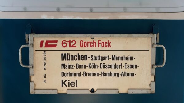IC 610 Gutenberg München-Hamburg=Altona Startseite Zuglaufschilder Fernverkehr InterCity IC 610 Gutenberg München-Hamburg=Altona Das Bww München Hbf stellte 1980 diesen Zug. Vorheriger Zuglaufschild IC 616 Friedrich Schiller München-Dortmund Nächster Zuglaufschild IC 612 Gorch Fock München-Kiel