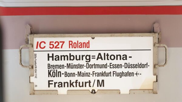 Dieser Zug fuhr während des Fahrplanjahres 1991/1992 nur am Samstag und Sonntag bis Münster,daher dieses Zuglaufschild.