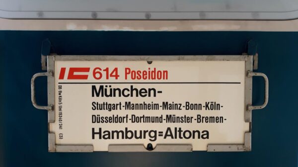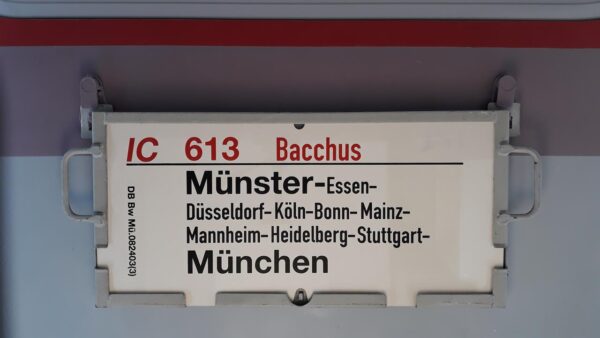 IC 614 Friedrich Schiller München-Dortmund Startseite Zuglaufschilder Fernverkehr InterCity IC 614 Friedrich Schiller München-Dortmund Gestellt vom Betriebswerk München und vom Wetter braun geworden… Vorheriger Zuglaufschild IC 614 Poseidon München-Hamburg=Altona Nächster Zuglaufschild IC 615 Drachenfels Münster-München