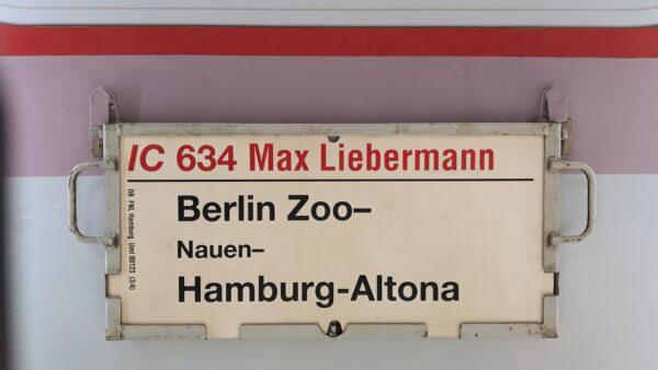 IC 618 Schwabenpfeil Stuttgart-Hamburg=Altona Startseite Zuglaufschilder Fernverkehr InterCity IC 618 Schwabenpfeil Stuttgart-Hamburg=Altona Das Zuglaufschild ist durch Wind und Regen grau und unansehnlich geworden. Vorheriger Zuglaufschild IC 635 Max Liebermann Hamburg Altona-Berlin Zoo Nächster Zuglaufschild IC 521 Herrenhausen Braunschweig-München