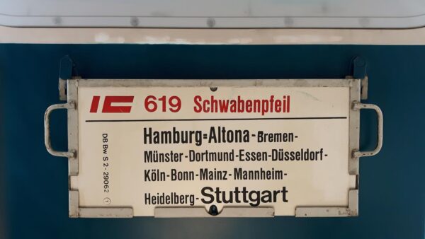 Vorheriger Zuglaufschild IC 619 Schwabenpfeil Hamburg=Altona-Stuttgart