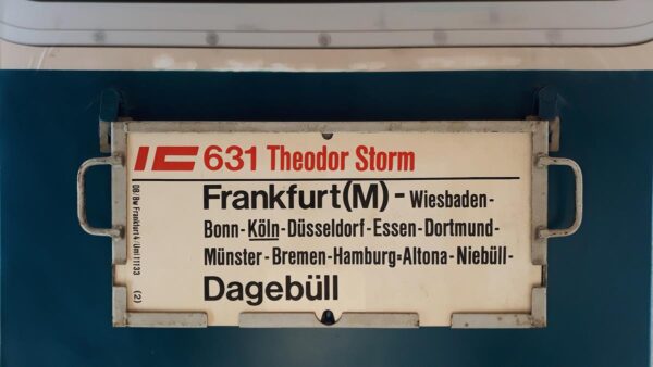 Das Betriebswerk Köln 5 stellte diesen Zug,dessen Zielbahnhof auf diesem Zuglaufschild schlecht leserlich aufgedruckt war.