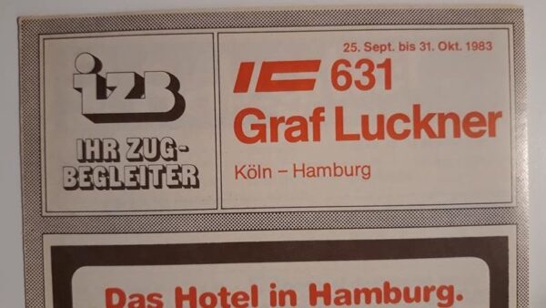 Vorheriger Zuglaufschild ZLS IC 631 Graf Luckner Köln-Hamburg
