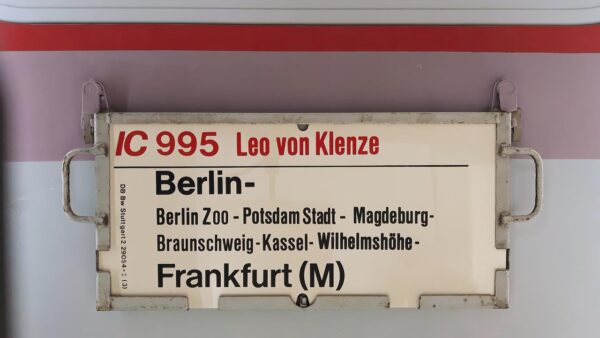 IC 635 Max Liebermann Hamburg Altona-Berlin Zoo Startseite Zuglaufschilder Fernverkehr InterCity IC 635 Max Liebermann Hamburg Altona-Berlin Zoo 1994: Hamburg-Altona ab 18:38 Uhr Berlin Zoologischer Garten an 21.52 Uhr Vorheriger Zuglaufschild InterRegio 2444 Leipzig-Hannover Nächster Zuglaufschild IC 713 Diplomat Hamburg=Altona-Stuttgart
