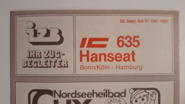 IZB IC 636 Poseidon Westerland/Sylt-Köln Startseite Zuglaufschilder Besonderheiten Zugbegleiter Faltblatt vorhanden IZB IC 636 Poseidon Westerland/Sylt-Köln Vorheriger Zuglaufschild IZB IC 636 Karolinger Hamburg-Aachen Nächster Zuglaufschild IZB IC 635 Hanseat Bonn/Köln-Hamburg