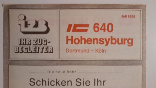 IZB IC 641 Hohensyburg Köln-Dortmund Startseite Zuglaufschilder Besonderheiten Zugbegleiter Faltblatt vorhanden IZB IC 641 Hohensyburg Köln-Dortmund Vorheriger Zuglaufschild IZB IC 642 Gürzenich Dortmund-Köln Nächster Zuglaufschild IZB IC 640 Hohensyburg Dortmund-Köln