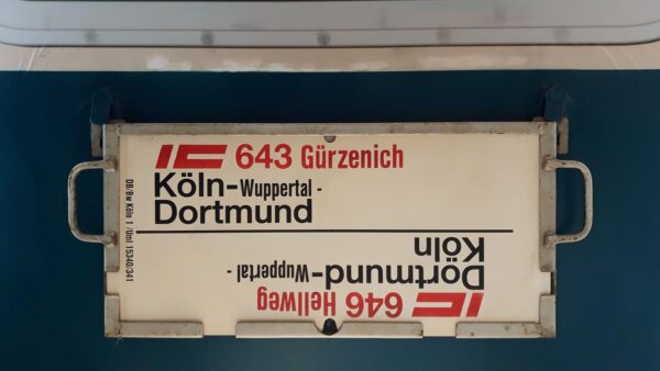IC 646 Hellweg Dortmund-Köln Startseite Zuglaufschilder Fernverkehr IC 646 Hellweg Dortmund-Köln Das Betriebswerk Köln 1 stellte diesen Zug. Vorheriger Zuglaufschild IC 643 Gürzenich Köln-Dortmund Nächster Zuglaufschild IC 501 Rheinblitz Hannover-Basel Bad Bf