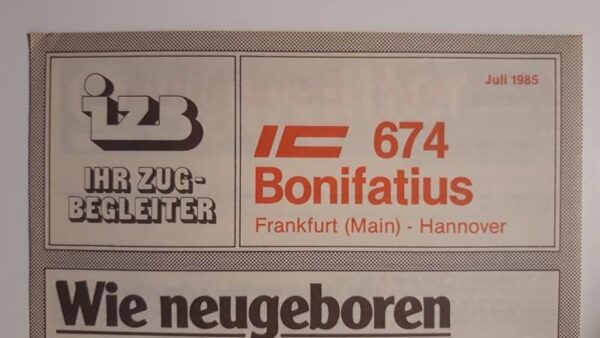 Vorheriger Zuglaufschild IZB IC 674 Bonifatius Frankfurt(M)-Hannover