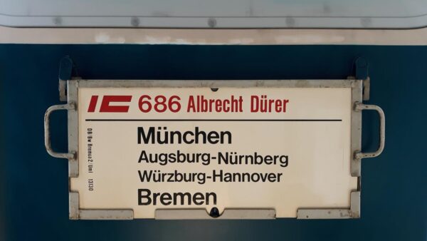 Vorheriger Zuglaufschild IC 686 Albrecht Dürer München-Bremen
