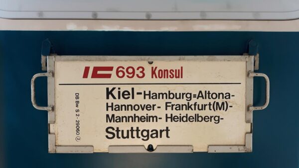 Vorheriger Zuglaufschild IC 693 Konsul Kiel-Stuttgart