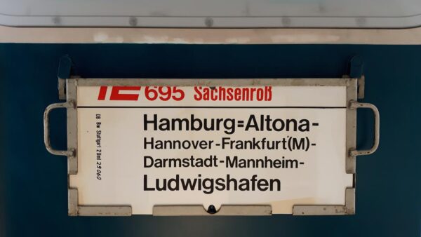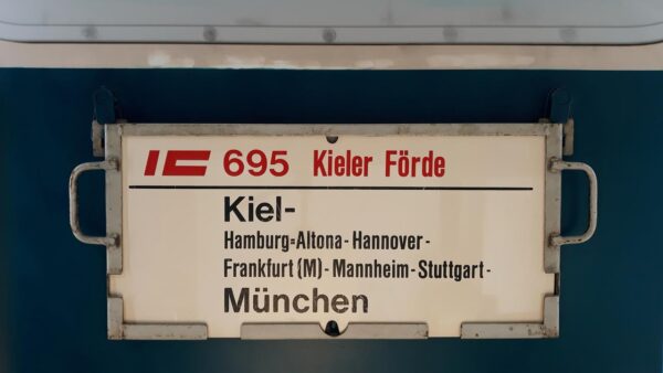 Die Kieler Förde ist eine rund 17 km lange und schmale Förde an der Ostsee, die durch Gletscherbewegungen in der letzten Eiszeit entstanden sein soll. Bei diesem Zug ist Heidelberg als Zwischenhalt aufgeführt. Gestellt 1990 vom Betriebswerk Kiel.