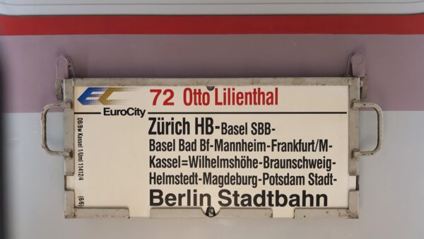 Nächster Zuglaufschild EuroCity 72 Otto Lilienthal Zürich HB-Berlin Stadtbahn