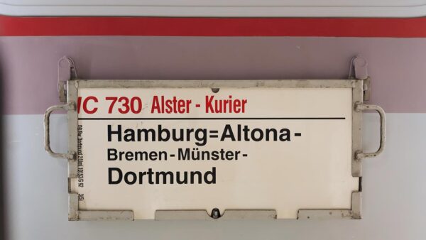 Der Zug fährt 1992 von Hamburg-Altona nach Nürnberg-Das Schild verrät nicht welche Strecke er nimmt.