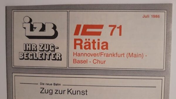 Nächster Zuglaufschild IZB IC 71 Rätia Hannover/Frankfurt(M)-Chur