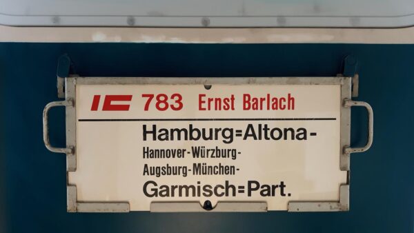 IC 783 Ernst Barlach Hamburg=Altona-München Startseite Zuglaufschilder Fernverkehr InterCity IC 783 Ernst Barlach Hamburg=Altona-München Ein Zug aus dem Jahr 1988,gestellt vom Betriebswerk Hamburg 2 Vorheriger Zuglaufschild IC 800 Therese Giehse München-Berlin Hbf Nächster Zuglaufschild IC 783 Ernst Barlach Hamburg=Altona-Garmisch=Partenkirchen