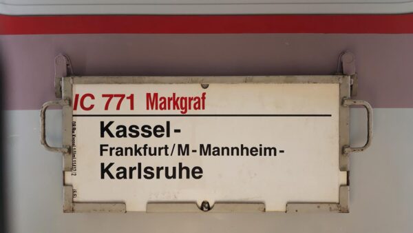 Vorheriger Zuglaufschild IC 771 Markgraf Kassel-Karlsruhe