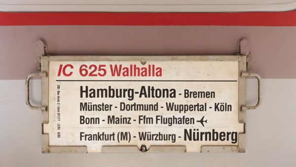 Im Fahrplanjahr 1992 war es ein Kurswagen von Dagebüll, der dieses Zuglaufschild führte.Er wurde in Nielbüll an den Hauptzug aus Westerland angehängt.