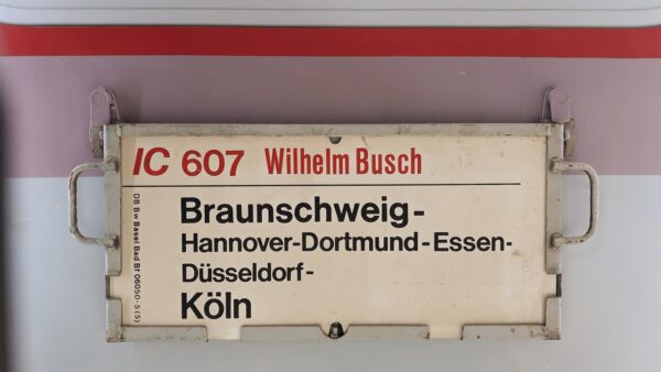 Vorheriger Zuglaufschild IC 607 Wilhelm Busch Braunschweig-Köln