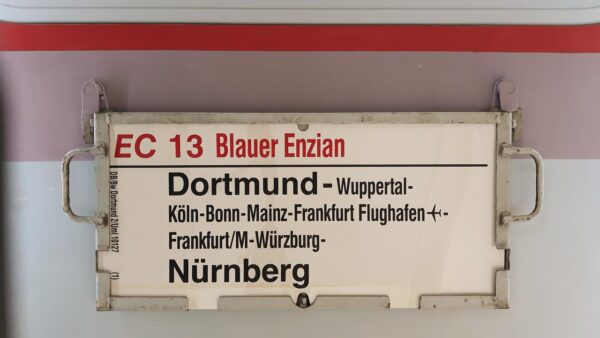 Vorheriger Zuglaufschild EuroCity 13 Blauer Enzian Dortmund-Nürnberg