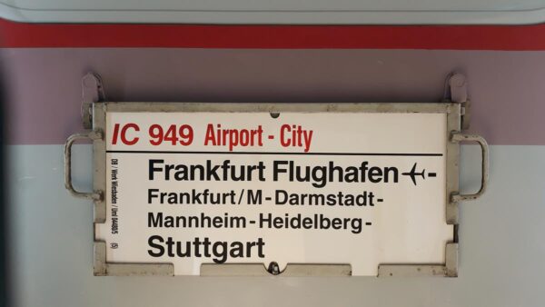 IC 924 Airport-City Frankfurt/M-Düsseldorf Flughafen Startseite Zuglaufschilder Fernverkehr InterCity IC 924 Airport-City Frankfurt/M-Düsseldorf Flughafen Das Werk Wiesbaden stellte 1994 diesen Zug. Vorheriger Zuglaufschild IC 949 Airport-City Frankfurt Flughafen-Stuttgart Nächster Zuglaufschild IC 725 Berchtesgadener Land Hamburg-Altona-Berchtesgaden