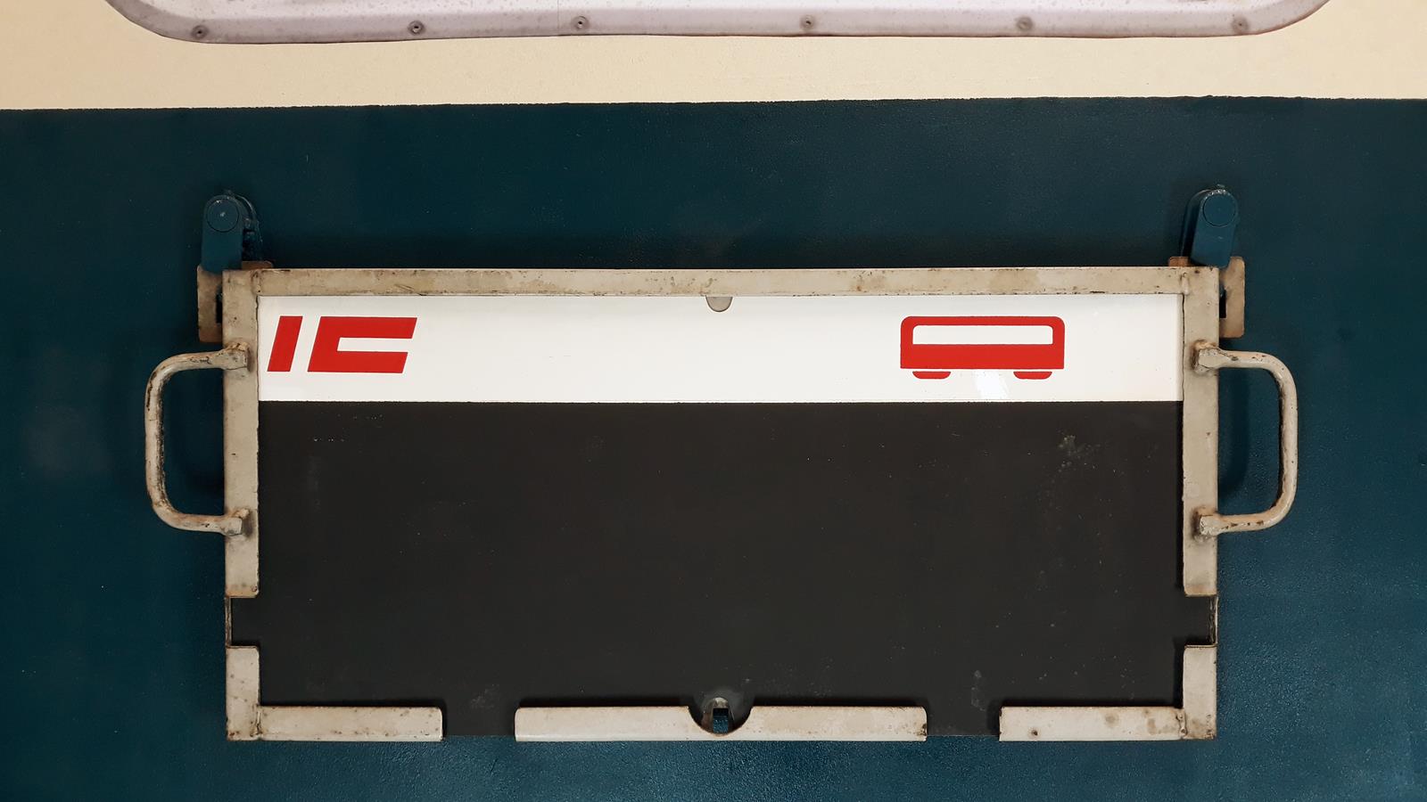 IC Leerschild Wagenlogo Startseite Zuglaufschilder Fernverkehr InterCity IC Leerschild Wagenlogo Ein Schild,das man mit einem Kreidestift beschriften konnte, Vorheriger Zuglaufschild Sonderzug 11.-17.April 1993 Aulendorf-Lourdes Pilgerdienst Lempka Nächster Zuglaufschild EuroCity 160 Maria Theresia Wien Westbf-Zürich HB