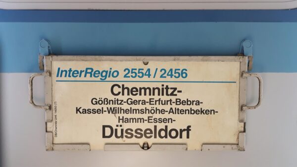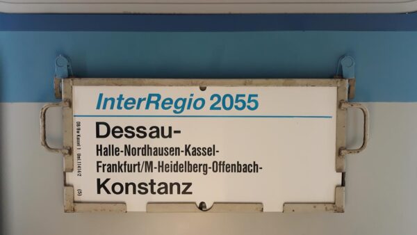 Mit einer durchschnittlichen Geschwindigkeit von 73 km/h benötigte der IR 2054, laut Fahrplan von 1993, von Konstanz  nach Dessau planmäßig 11 h 1 min. Mit 38 Haltestellen und zwei Richtungswechsel in Frankfurt Main und Kassel Hbf fuhr dieser Zug von Südwest nach Nordost – diagonal durch die Republik. Das Betriebswerk Kassel stellte 1993 diesen InterRegio-Zug.