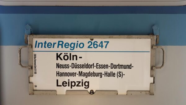 Ein Schild des Betriebswerkes Bremen-Es ist ein Schild des IR 2649 im Fahrplanjahr 1995.