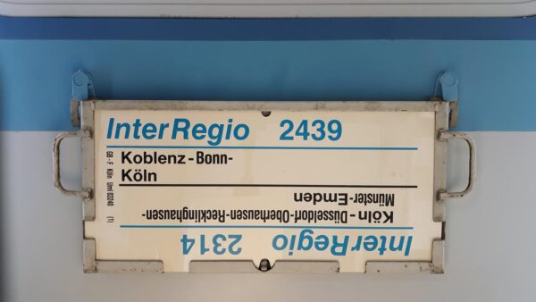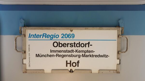 Ein Schild des Betriebswerkes Schwerin-Es ist ein Schild des IR 2132 und IR 2135