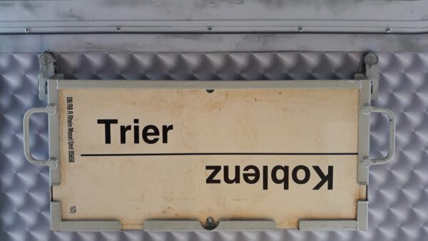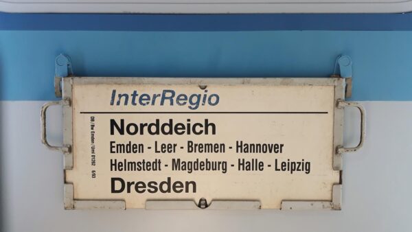 Das Wetter hat das Schild stark leiden lassen.Das Betriebswerk Emden stellte 1993 diesen Zug.