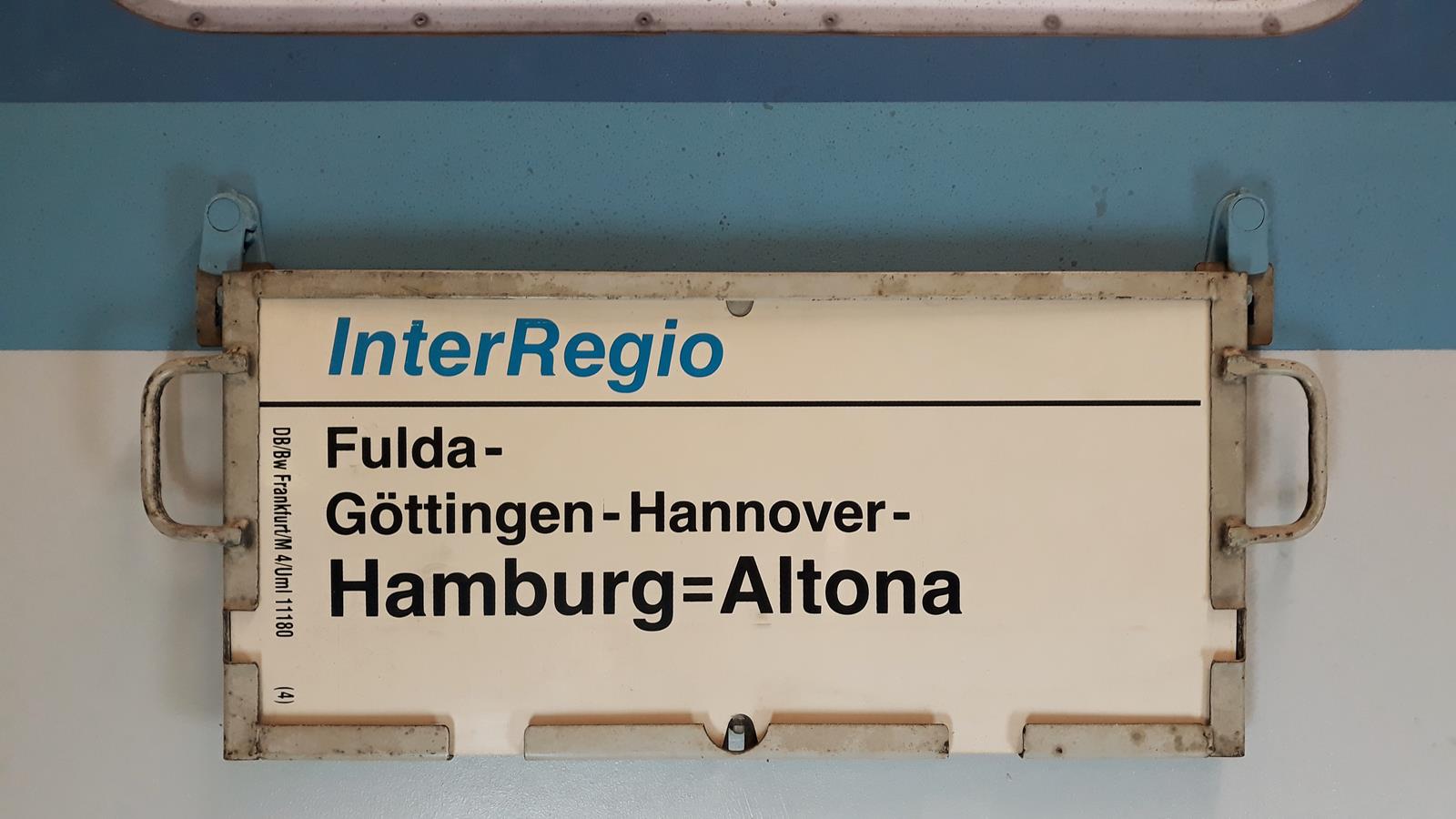 Startseite Zuglaufschilder Fernverkehr InterRegio-Züge InterRegio Fulda-Hamburg=Altona