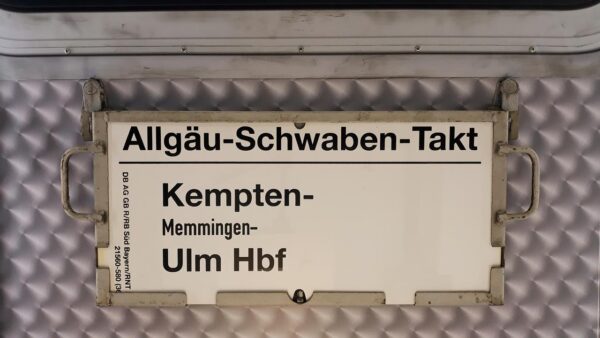 Vorheriger Zuglaufschild Allgäu-Schwaben-Takt Kempten-Ulm Hbf