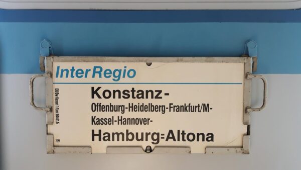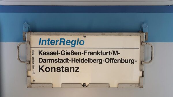 Ein Schild des Betriebswerkes Kassel -Es ist ein Schild des IR 1775 im Fahrplanjahr 1989/1990-Das Schild war ein Sonnenschutz in einer Scheune in Lüneburg.