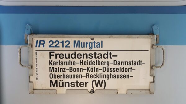 Nächster Zuglaufschild InterRegio 2212 Murgtal Freudenstadt-Münster(W)
