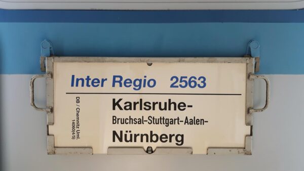 Nächster Zuglaufschild InterRegio 2563 Karlsruhe-Nürnberg