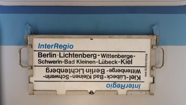 Eine umsteigefreie InterRegio-Verbindung von Kiel nach Berlin Lichtenberg.Bad Kleinen (bis 1915 Kleinen) ist eine Gemeinde in Mecklenburg-Vorpommern im Landkreis Nordwestmecklenburg am Nordufer des Schweriner Sees.